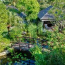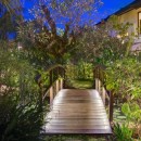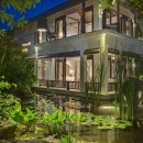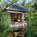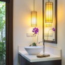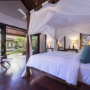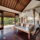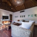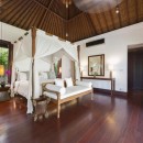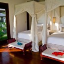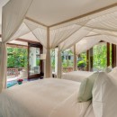 The bedrooms exude tropical romance. The bed frames feature canopies which add privacy and whimsy to this stay. The dark wood floors and bamboo ceilings exude tropical charm and warmth. Four bedrooms feature a king-sized bed, and two bedrooms feature two single beds each, making this the perfect stay to accommodate a variety of group needs.