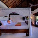 Bedroom 3: Bedroom with a four-poster king-size bed, A/C, ceiling fan, TV/DVD, iPod dock, access to veranda, and en-suite bathroom with shower, vanity and wc. 2 guests maximum
