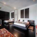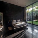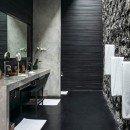 You’ll find the modern interior design with lots of contrast and clean lines continues seamlessly in the bedrooms. Enjoy large floor-to-ceiling windows, dark walls, and flooring, contrasted by neutral colors and crisp bedding.