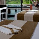 Bedroom 6: Ground floor bedroom with two single beds, A/C, access to pool terrace and shared bathroom with bathtub, shower, vanity and wc. 2 guests maximum
