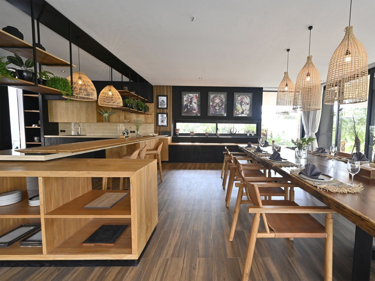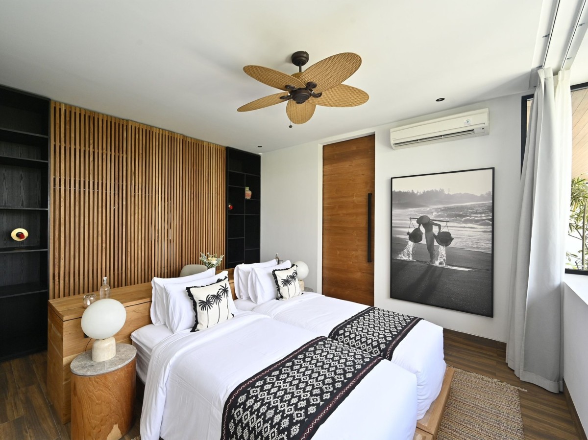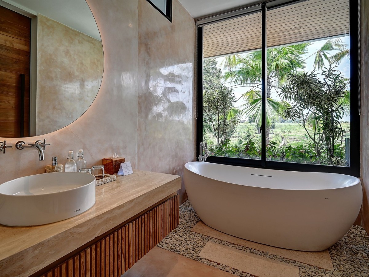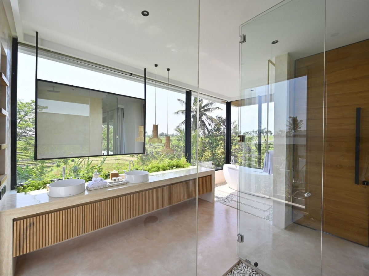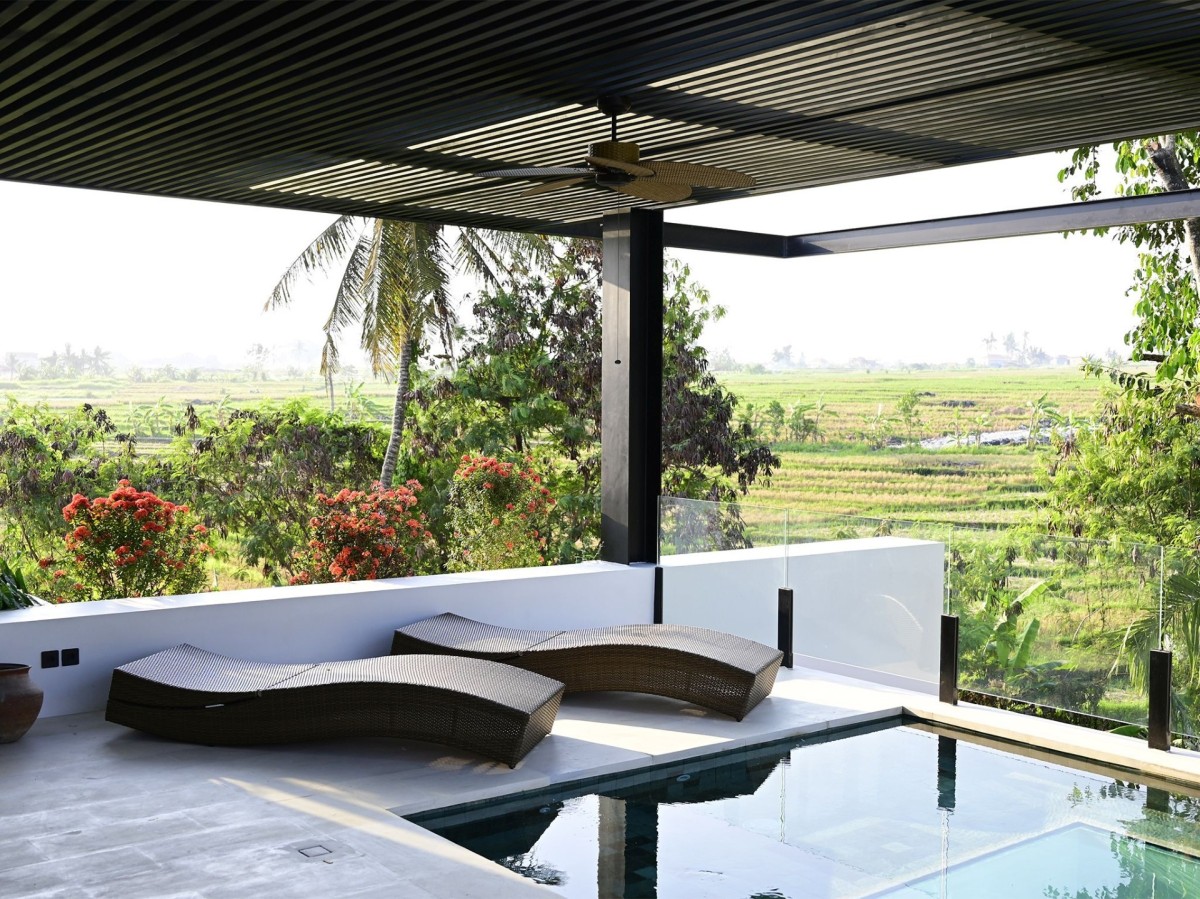Completed in 2023, the stunning Villa Nica impresses with its blend of contemporary tropical design, elegant interiors, curated artwork, and an extraordinary sense of space. This six-bedroom masterpiece, designed with no detail spared, spans two wings connected by expansive indoor and outdoor living areas that open out to sweeping views of the surrounding rice fields. Unwind in your light-filled bedroom retreat in the east wing, or claim the magnificent master suite that occupies the entire upper west wing — complete with a glass-bottom pool that appears to float above the sunken lounge below.