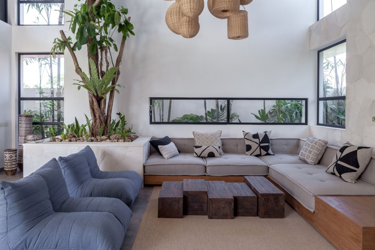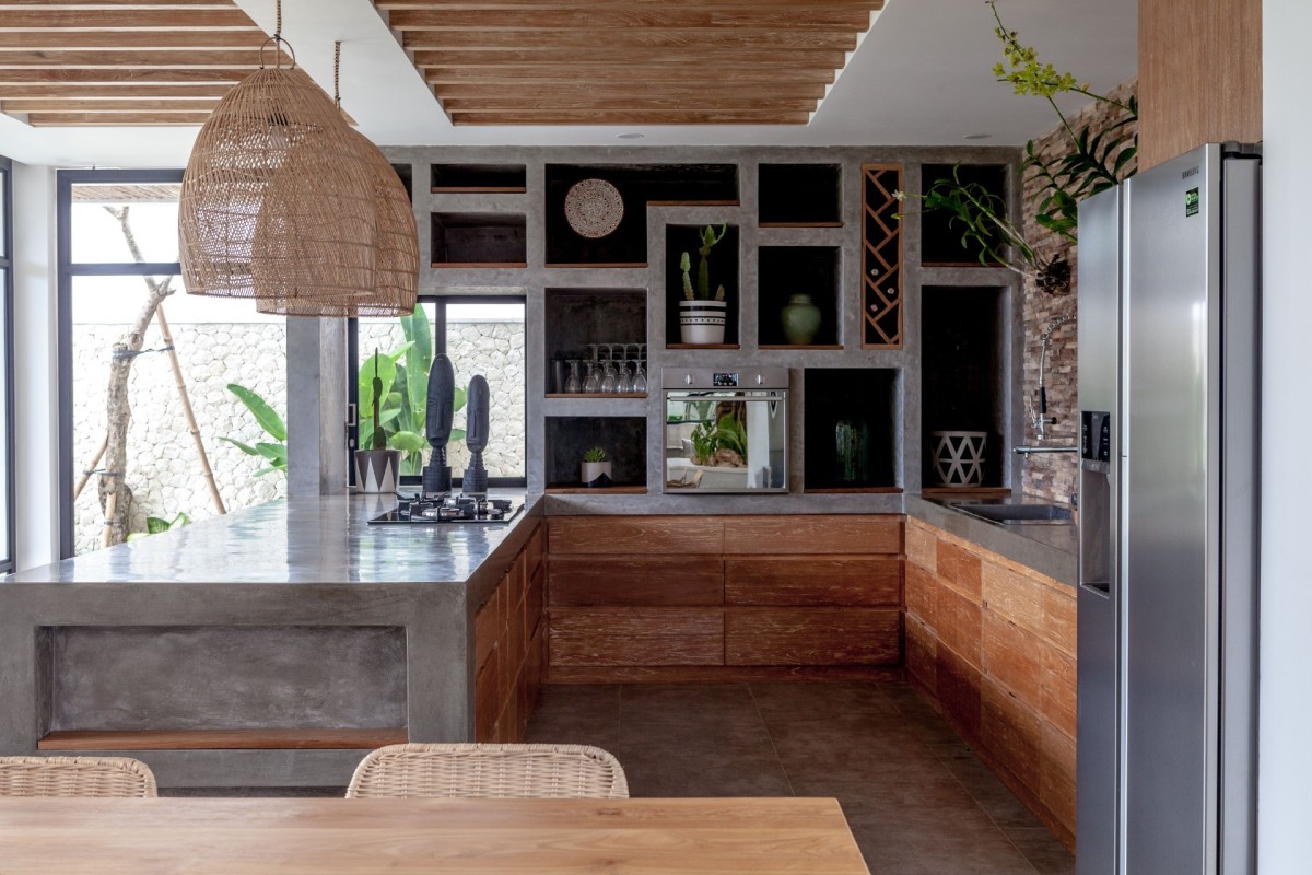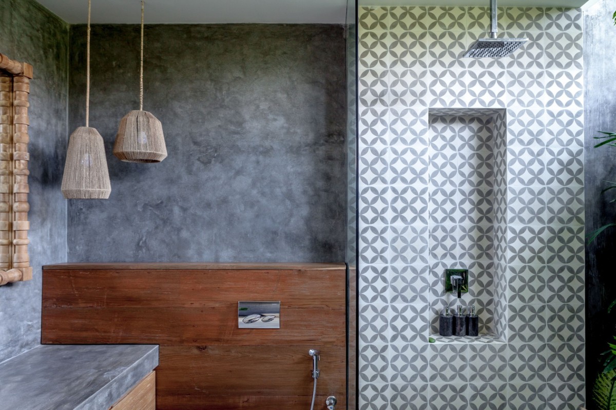 Inside, Villa Nonnavana impresses with its sleek cement surfaces, warm wooden accents, organic rattan furniture, and carefully selected metallic and tiled elements—all combining to create a stylish, contemporary ambiance.