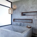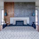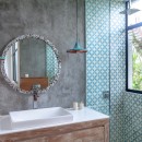 Perfect for families, the villa includes a dedicated children’s room equipped with two bunk beds and a baby cot. The three additional ensuite bedrooms offer ultimate comfort, with thoughtfully designed bathrooms showcasing concrete finishes and elegant stonework. The master suite opens onto a private balcony overlooking the pool, offering a serene start and end to each day.