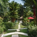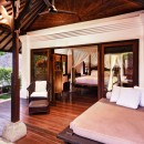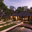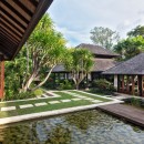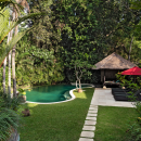 The villa boasts three private bedrooms, each situated in its own secluded pavilion, ensuring a sense of privacy and tranquility. Surrounded by vibrant tropical gardens, rich with lush flora, the pavilions are connected by a series of steps and flagstones, leading the way towards the Pangi River. The melodious sound of the flowing river resonates throughout the villa's water features, including the free-form pool nestled next to the river, and the graceful fountains and fishponds that gracefully cascade over the terraces. In fact, the villa's name, Pangi Gita, pays homage to the singing river.
