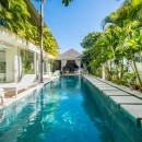 Puro Blanco is a luxurious Bali holiday villa comprising a two-storied sleeping pavilion with an upstairs outdoor lounge, a single-storied living and dining pavilion with an open-plan kitchen, and a 3.5-meter relaxation gazebo set beside a stunning 12-meter aqua-hued swimming pool.