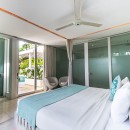 Bedroom 5: Upper floor Master bedroom with a king-size bed, A/C, ceiling fan, WiFi, safe, lounge area, pool view, and en-suite bathroom with rain shower, vanity, bidet, and WC. 2 guests maximum