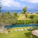 Set at the mouth of a gentle lagoon where river meets sea, the villa boasts over 100 metres of beach frontage with sweeping views of one of Canggu’s iconic surf breaks. Rolling lawns follow the natural contours of the landscape, while the free-form infinity pool blends effortlessly into the ocean beyond, creating a breathtaking horizon. The villa’s garden is a tropical haven, alive with fragrant frangipani trees, swaying coconut palms, and vibrant green foliage. At the heart of this tropical expanse lies a dedicated event space – a picturesque coconut grove that connects directly to the beach via a charming timber walkway, making it a dream setting for weddings and special occasions.
