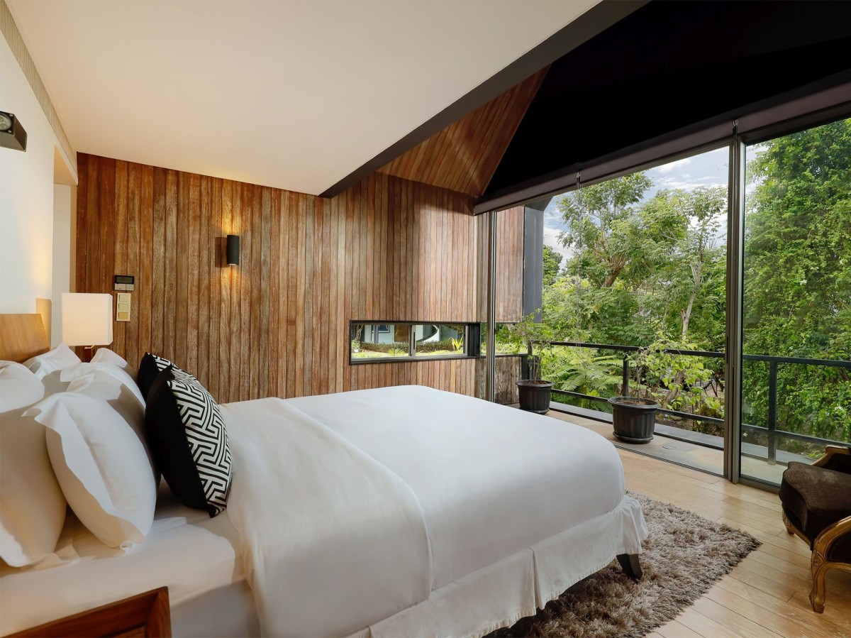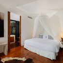 Bedroom 2: Upper floor Master bedroom 2 with a king-size bed, A/C, WiFi, access to terrace, pool view, Connected to Master Bedroom 3 by the rooftop lawn, and en-suite bathroom with bathtub, shower, double vanity and WC. 2 guests maximum