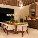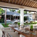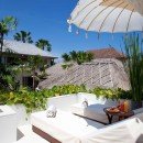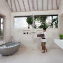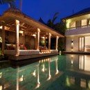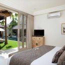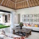 A true sanctuary, Villa Adasa showcases traditional Balinese architectural influences, from its soaring open-sided living pavilion to its use of local materials like alang-alang thatched roofing, Palimanan stone, polished teakwood, and terrazzo flooring. The interiors blend heritage with high design—think striking black-and-white photographs of 1930s Bali, vivid batik cushions, antique mirrors, orchids in full bloom, and richly textured Turkish and Tibetan rugs. Modern luxuries such as satellite TVs are seamlessly integrated into the serene and stylish setting.