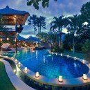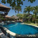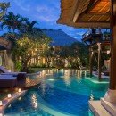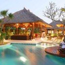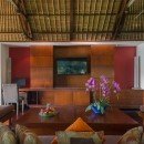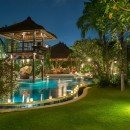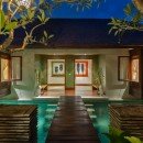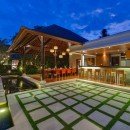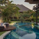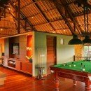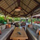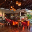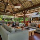 At Villa Asta, enjoy a giant free-form pool that winds its way through the estate grounds. Swim through the waterfall and say hello to your group members who are lounging on the overlapping sundeck or playing badminton or volleyball. Then dive off of the four-meter dive platform—a balé in the sky! All of this is viewable from the open-air living and dining pavilions that open onto the terrace… tropical living at its finest!