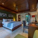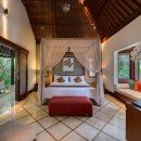 Bedroom 1: Master bedroom with a king-size bed, TV, DVD, walk-in closet, access to the plunge pool and outdoor bathroom with bathtub, shower, vanity and WC. 2 guests maximum.