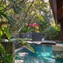 In the home, enjoy a pool table, home theatre with a movie library, board game collection, computer, TV room, and ping-pong table. The bedrooms also provide the highest level of flexibility for all types of groups. All three bedrooms that have twin beds can convert to kings, and there are trundle beds underneath! This means that these bedrooms can accommodate six adults or up to 12 children! With that many kids, the adults will need a retreat, so they can relax in the master pavilion on the opposite end of the pool. Here, they have two private master suites and their own plunge pool.