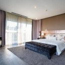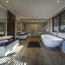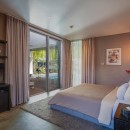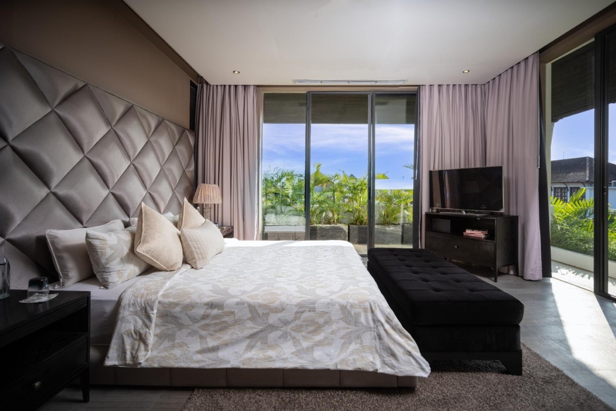 The villa comfortably accommodates up to six guests across three elegant ensuite bedrooms, with the option to add an extra bed. Floor-to-ceiling glass windows frame calming views of the pool or garden, while interiors are tastefully styled with Balinese-inspired touches. Each bedroom features a plush king-size bed, ample wardrobe space, and a private bathroom.