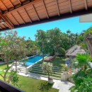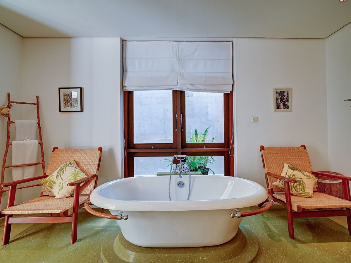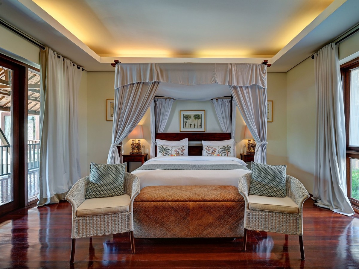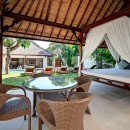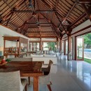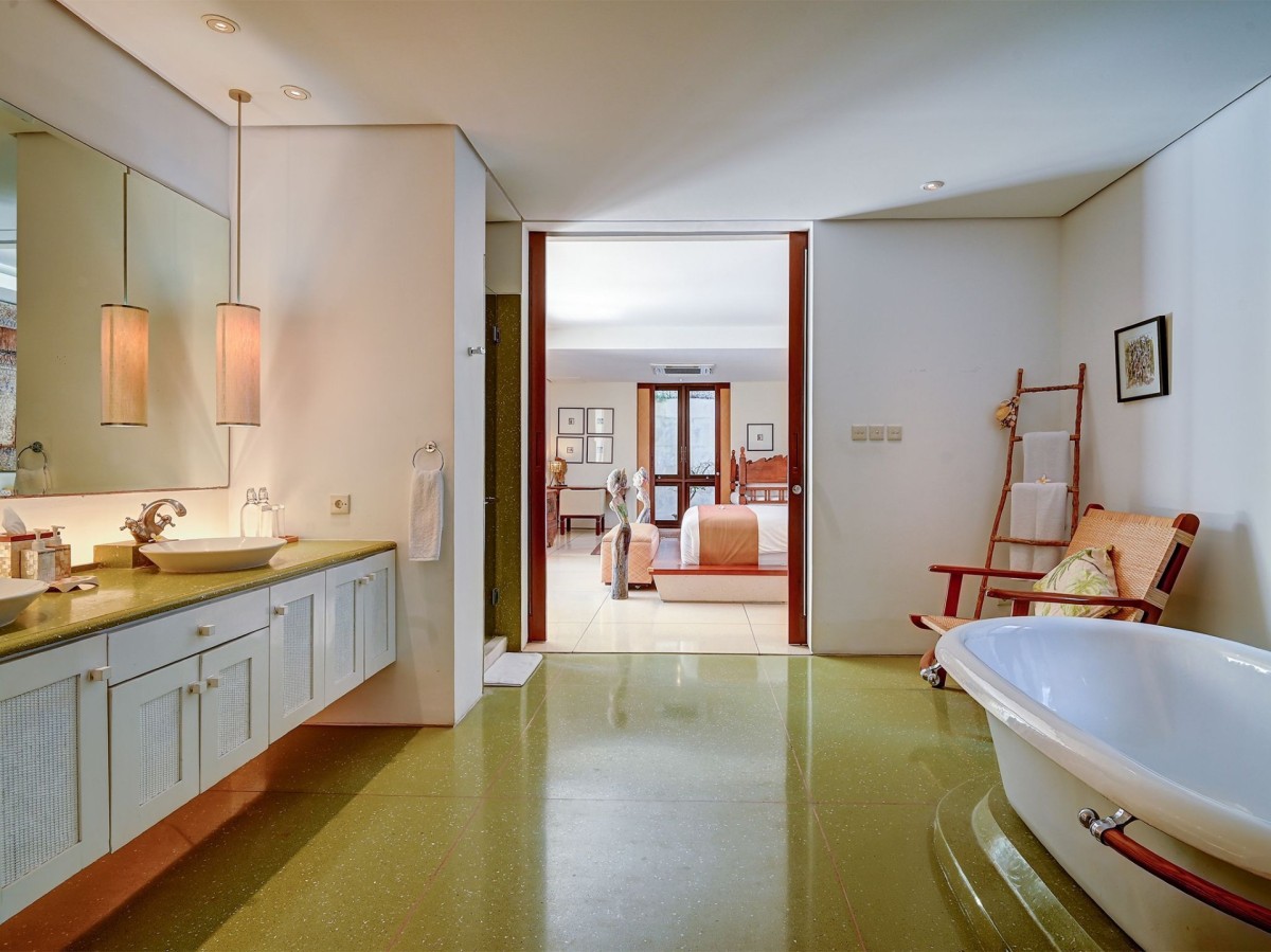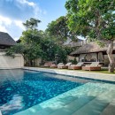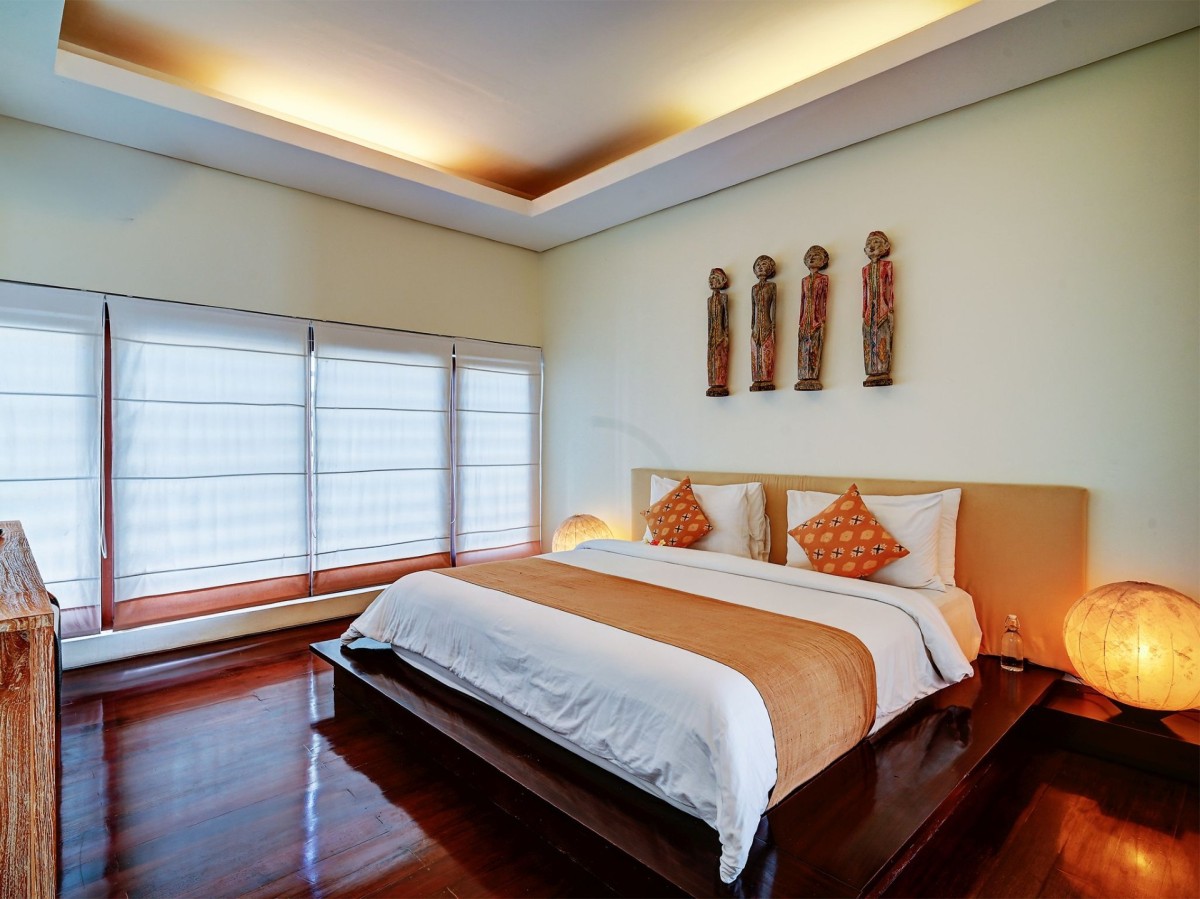Thoughtfully styled with a nod to traditional Balinese aesthetics, the villa features local antiques, hand-carved furniture, and culturally inspired artworks. A tranquil Balinese Hindu temple graces the lush central garden, while the interiors include inviting touches like an ornately carved Javanese daybed in the living room and a breezy poolside bale perfect for afternoon lounging.