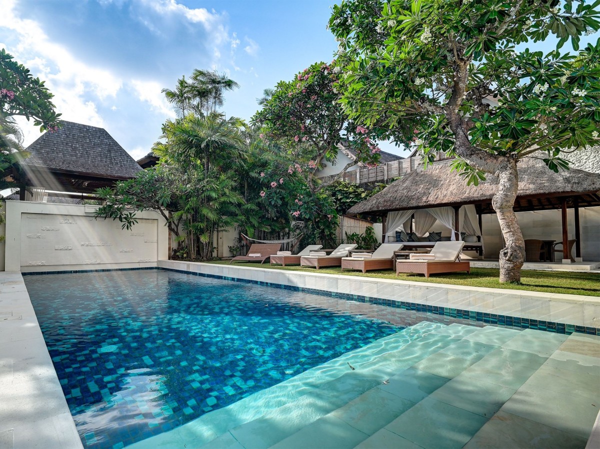 From the moment you step through the gates of Villa Casa Evaliza, you’re transported into a peaceful, frangipani-scented sanctuary that feels worlds away from the vibrant energy of nearby Seminyak. This elegant five-bedroom villa offers the perfect blend of Balinese charm and modern comfort, making it an ideal retreat for families or groups of friends seeking both relaxation and connection.