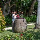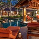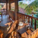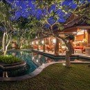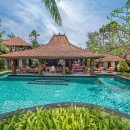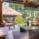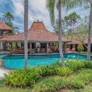Outside, the beauty continues with a luxuriously large swimming pool at the center of a lush tropical garden. There are plenty of lounging chairs and umbrellas in the pool balé so you can relax in comfort.