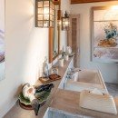 Then, the two guest suites encompass the second story. Each of the bedrooms is decorated with colonial-era pieces, eastern textiles, heirloom curios, and original art pieces that bring the entire home together.