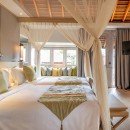 Bedroom 1: Master bedroom with a four-poster king-size bed, A/C, TV, dressing area, access to veranda with breakfast table and en-suite bathroom with bathtub, walk-in shower, outdoor shower, double vanity and WC. 2 guests maximum.