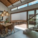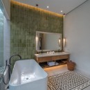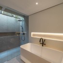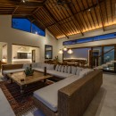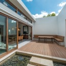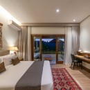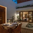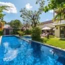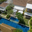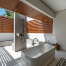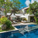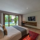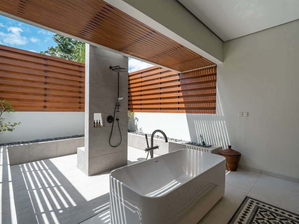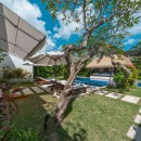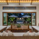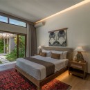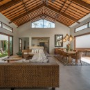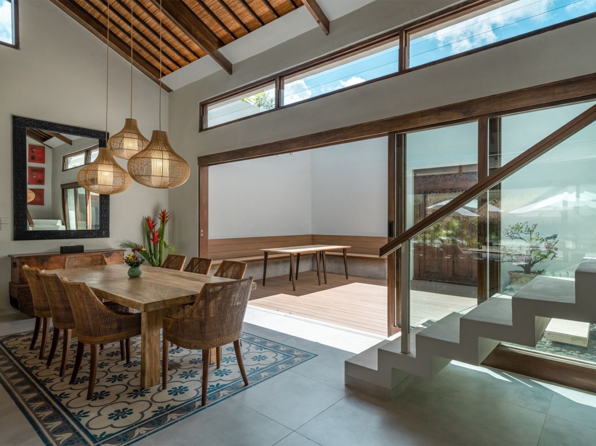 The villa’s double-height living and dining pavilion opens fully to the tropical garden, creating a breezy, open-air ambiance. A peaceful courtyard offers an ideal setting for morning coffee or afternoon tea.