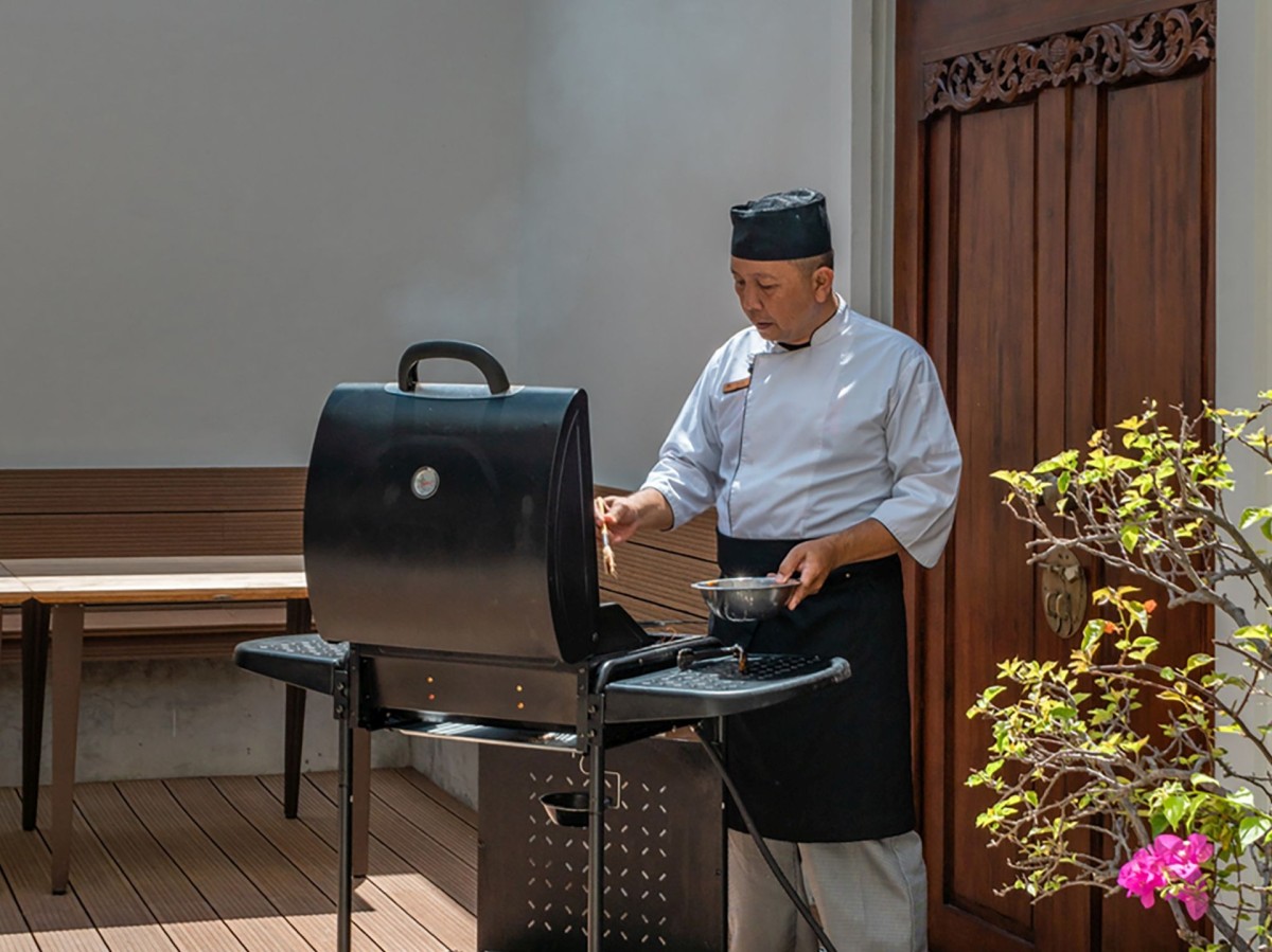 Spend your days unwinding beside the 16-metre swimming pool, whether soaking up the sun on a lounger or relaxing in the shade of the thatched poolside balé, surrounded by vibrant bougainvillea, fragrant frangipani, and blooming orchids. When hunger strikes, your private chef is ready to delight with anything from a casual tapas-style supper under the stars to a traditional Balinese feast.
