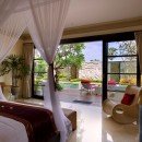 Bedroom 5: Ground floor bedroom with a king-size bed, A/C, TV, DVD, open to pool and garden, dressing area and en-suite bathroom with bathtub, shower, vanity and wc. 2 guests maximum