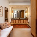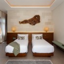 Bedroom 6: Lila bedroom with a 2 single beds, couch, A/C, WiFi, access to garden and pool, and en-suite bathroom with shower, double vanity, bidet, and WC. 2 guests maximum