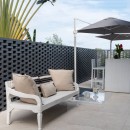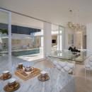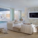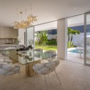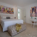 Set on a generous 547 sqm plot, the villa is designed to accommodate up to eight guests. Enclosed within a private walled garden, it features a flat lawn, an 8-metre swimming pool, and inviting indoor-outdoor living spaces. Clean architectural lines are complemented by marble floors, multi-textured walls, light-toned furnishings, and colourful artworks collected by the owner.