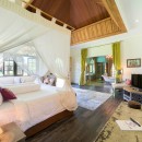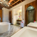 Bedroom 3: Lower floor - Love & Romance bedroom with a king-size bed, A/C, TV/DVD, desk, sofa,  and en-suite bathroom with outdoor shower, bathtub, double vanity, and WC. 2 guest maximum