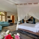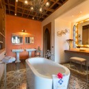 Bedroom 4: Lower floor - Love & Romance bedroom with a king-size bed, A/C, TV/DVD, desk, sofa,  and en-suite bathroom with outdoor shower, bathtub, double vanity, and WC. 2 guest maximum