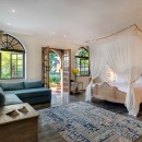 Bedroom 2: French Kiss bedroom with a king-size bed, A/C, TV/DVD, desk, sofa,  and en-suite bathroom with indoor/outdoor shower, bathtub, double vanity, and WC. 2 guests maximum