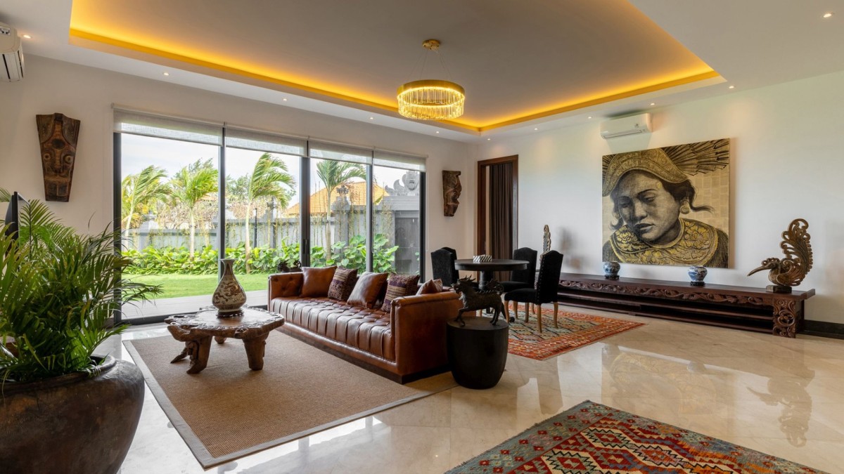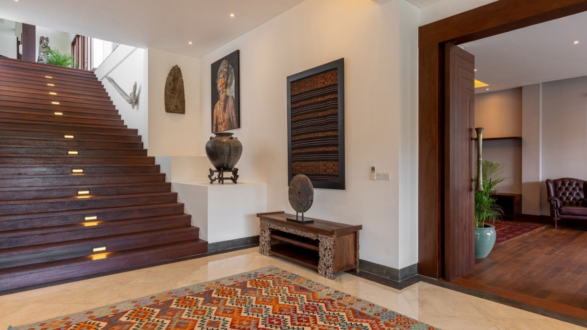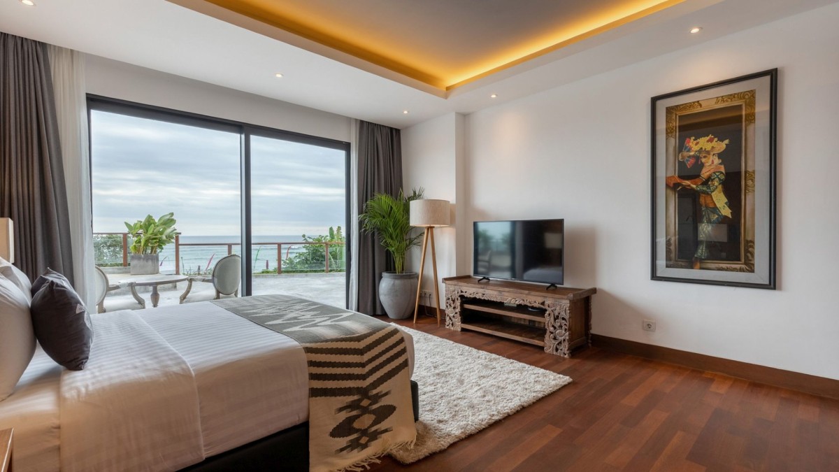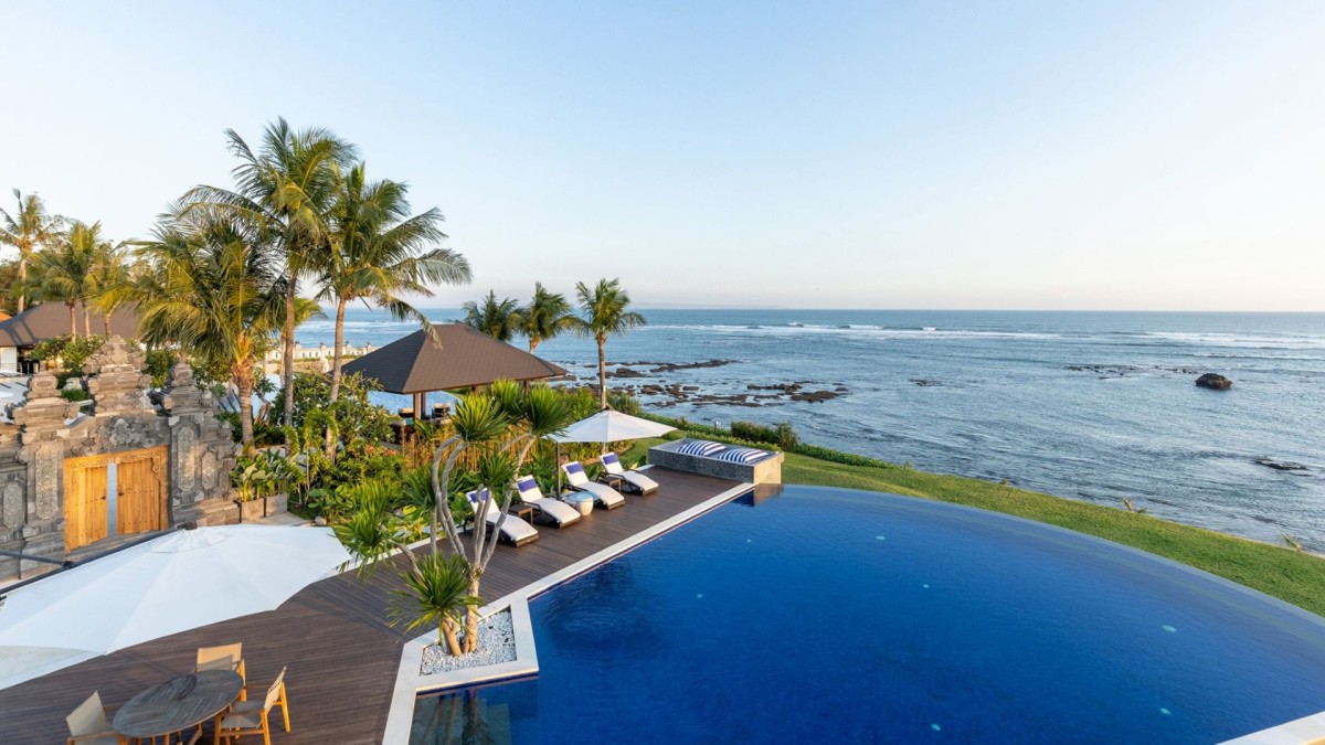 Completed in 2022, Tirtha Bayu Villa I showcases sleek contemporary architecture complemented by luxurious leather furnishings. Carefully curated antiques and artworks from across Indonesia add character and a unique sense of place. Perched atop a cliff, the villa offers breathtaking ocean views and an unforgettable setting.