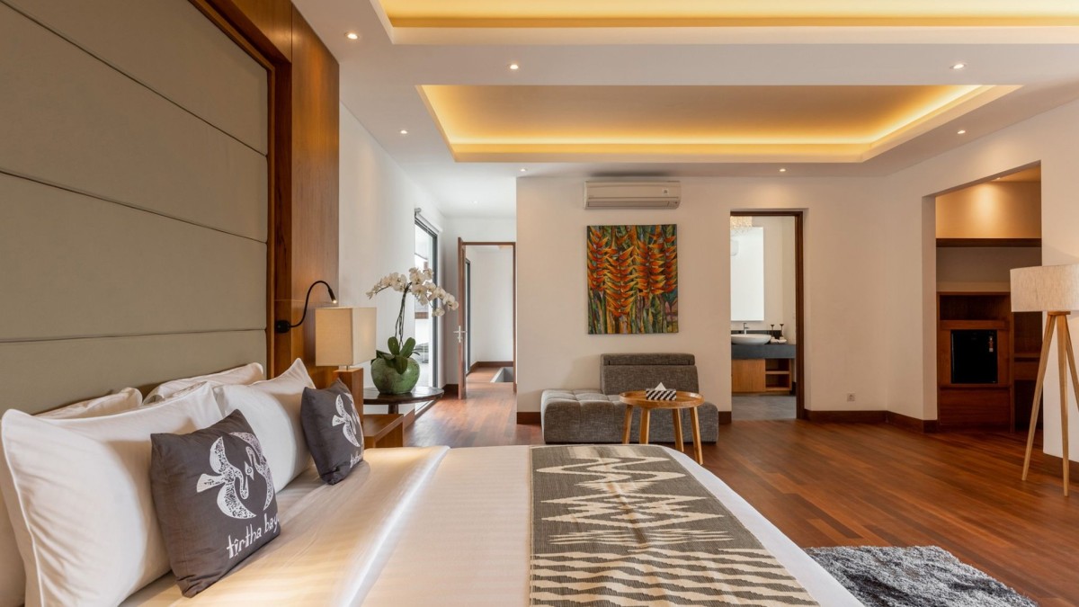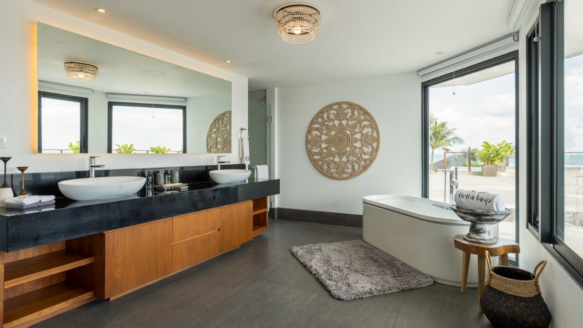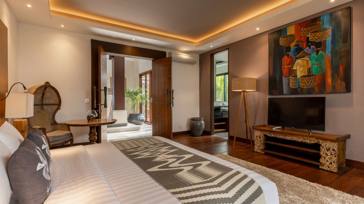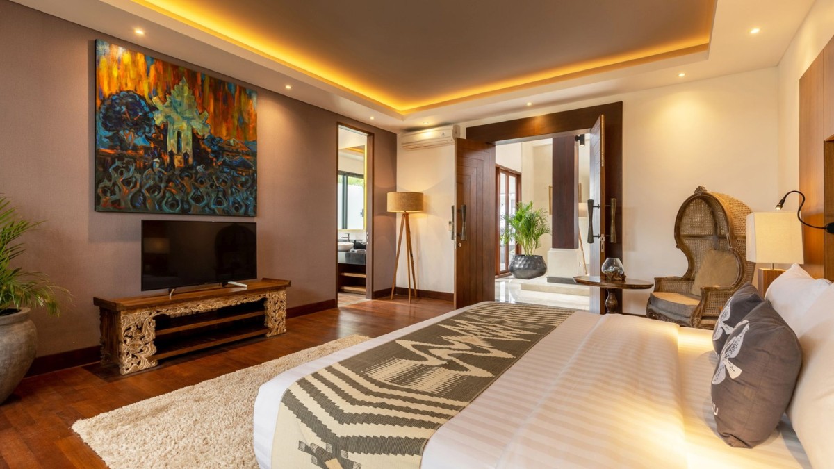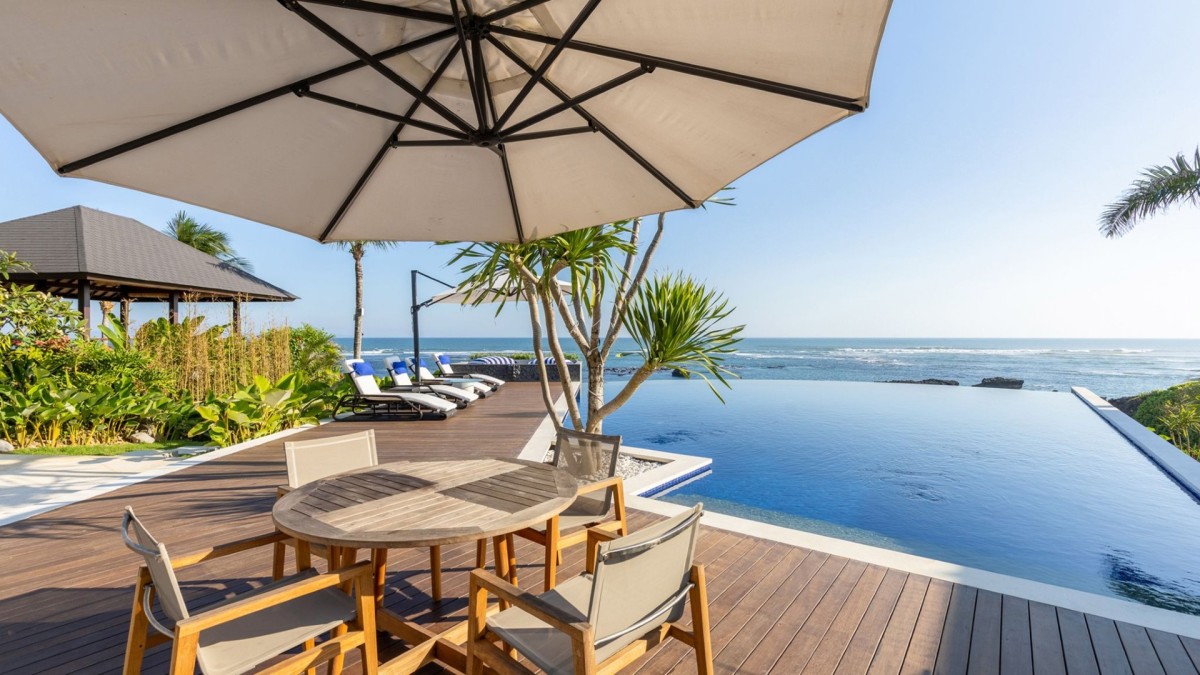 Completed in 2022, Tirtha Bayu Villa I showcases sleek contemporary architecture complemented by luxurious leather furnishings. Carefully curated antiques and artworks from across Indonesia add character and a unique sense of place. Perched atop a cliff, the villa offers breathtaking ocean views and an unforgettable setting.