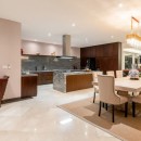 The vast air-conditioned open-plan living area is perfect for large gatherings, seamlessly connecting to an elegant dining room and a fully equipped kitchen—ideal for sociable evenings with family and friends.