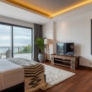 Bedroom 5: Lower fround floor Master bedroom with a king-size bed, A/C, WiFi, TV, access to garden, ocean view. and en-suite bathroom with bathtub, shower, vanity and WC. 2 guests maximum