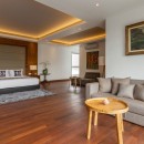 With two spacious master bedrooms and four deluxe suites spread across three floors, each featuring elegant spa-style en-suites, there’s ample space for everyone. The generous communal areas invite guests to come together, while numerous cozy nooks offer quiet corners for peaceful relaxation. The villa’s tranquil atmosphere is enhanced by the gentle sounds of birdsong, waves crashing below, and the soft trickle of water fountains.