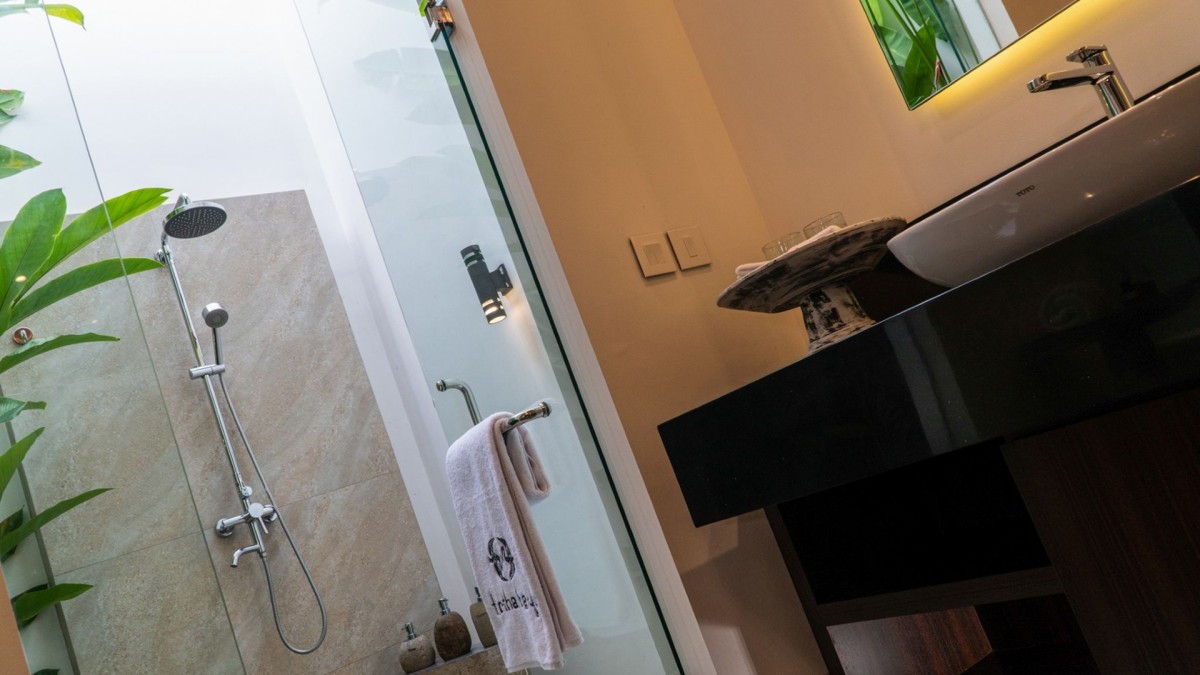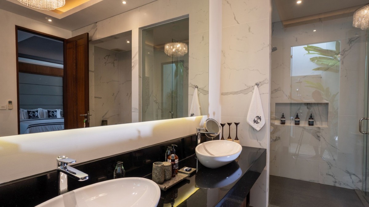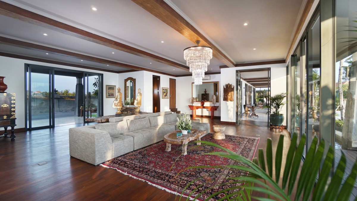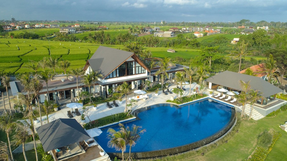 Designed for large family vacations and social gatherings, the south-end living pavilion opens fully to the outdoors, creating a seamless indoor-outdoor flow. At the opposite end of the pool, a relaxing balé provides a tranquil space to unwind and take in the spectacular views. Step beyond the villa and you’ll discover the natural beauty of the surrounding landscape — rice fields, coconut groves, and shaded village paths lined with banana and mango trees, as well as ornate sea temples accessible via a scenic clifftop trail.