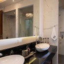 Bedroom 5: Ground floor Bedroom with a king-size bed, A/C, WiFi, TV, lounge area, and en-suite bathroom with indoor and outdoor showers, vanity and WC. 2 guests maximum