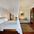 Bedroom 4: Desa ("Village") bedroom with a king-size bed (can be made up as two single beds), A/C, ceiling fan, and en-suite bathroom with outdoor shower on the screened roof terrace.,  double vanity, and WC. 2 guests maximum (daybed which can be arranged as a further single bed if required)