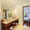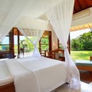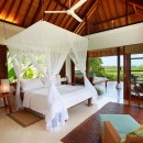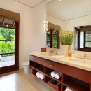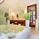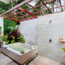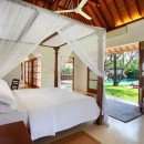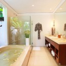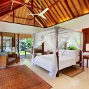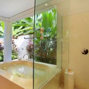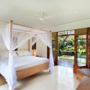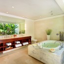 Bedroom 3: Taman ("Garden") bedroom with king-size bed, A/C, ceiling fan, desk, and en-suite indoor-outdoor bathroom with showers, bathtub, double vanity, and WC. 2 guests maximum (bedroom can accommodate extra single bed/baby cot)