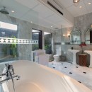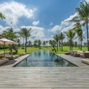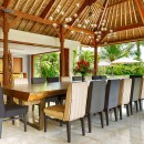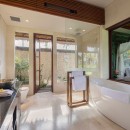 The villa has eight bedrooms and bathrooms, making it very spacious. Seven bedrooms feature luxurious king-sized beds, while one bedroom features bunk beds, perfect for younger guests. Stepping into any of the king bedrooms feels as though you are stepping into a museum. Authentic Asian-inspired art covers the walls, while gorgeous canopy bed frames and warm-toned fixtures complete the look.