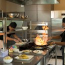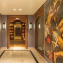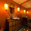 The interior is just as spectacular, boasting antique artwork and an avant-garde experience that will immerse you in the splendor of authentic Asian art styles. The main living area offers ample seating with custom millwork that stores antique art pieces and sculptures. Above, an ornate brass embossed ceiling enhances the luxurious feel of the space.
