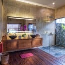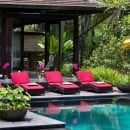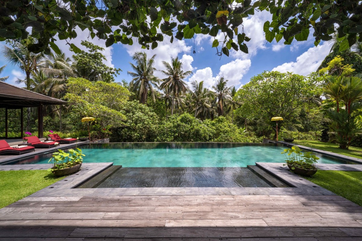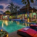Built from reclaimed timber and natural materials, and featuring more than 10,000 kg of imported crystals, Villa Crystal Castle embodies quiet luxury in the heart of Ubud. This wellness-focused retreat offers seven bedrooms for up to 14 guests, complemented by a private pool, yoga shala, spa, and a rose quartz reflexology path.
