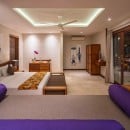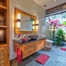 Bedroom 2: Topaz bedroom with a queen-size bed (can be made up as two single beds), A/C, ceiling fan, WiFi, TV, safe, mini bar, garden view, and shared bathroom (with room 3) with outdoor bathtub, shower, double vanity and WC. 2 guests maximum.