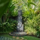 Life at Villa Crystal Castle follows the gentle rhythm of its peaceful surroundings. Stone pathways wind through tropical gardens to the wellness area, anchored by a rose quartz spiral. Each room has its own distinct atmosphere, with teak furnishings and rare crystals that give the villa its unique character. Two suites are situated in private bungalows, each equipped with a kitchenette and offering views across the rice fields. All spaces flow naturally into one another, creating an ambiance that feels both refined and deeply connected to nature.