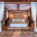 All of the bedrooms feature premier elements like air conditioning and king-sized beds. Some bedrooms are private villas unto themselves, with private pool access.