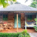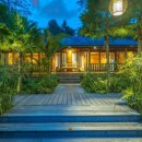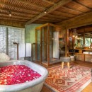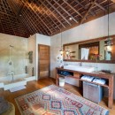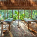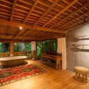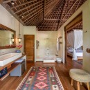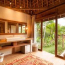 The bathrooms give off an even more harmonious vibe than the living area and bedrooms, with organic, stone-cut soaking tubs, earthy green accents, open concept showers, and more. Enrich yourself by visiting the on-site spa, small library, or yoga pavilion.