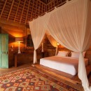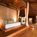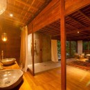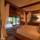Bedroom 5: Joglo IV bedroom with a king-size bed, ceiling fan, A/C, WiFi, safe, mini bar, access to the pool and en-suite bathroom with bathtub, shower, double vanity and WC. 2 guests maximum.