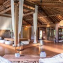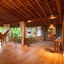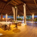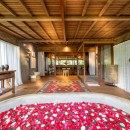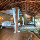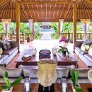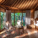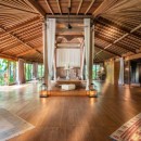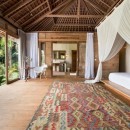 The villa is comprised of Joglo buildings, which seamlessly blend into one another, leading you through the main living and dining area to the yoga center and then to the suites. The interior exudes island charm and a laid-back interior design style with lots of natural light and traditional Javanese features.