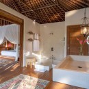 Bedroom 8: Kubu III bedroom with a king-size bed, ceiling fan, A/C, WiFi, safe, access to the private pool and en-suite bathroom with bathtub, shower, vanity and WC. 2 guests maximum.
