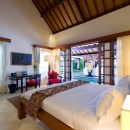 The Villa San sleeps up to 12 people in six bedrooms. Each bedroom features French doors leading out of the bedrooms. Three of the bedrooms are outfitted with king beds, and the other three are outfitted with twins. The bedrooms look out over the serenity of the gardens.